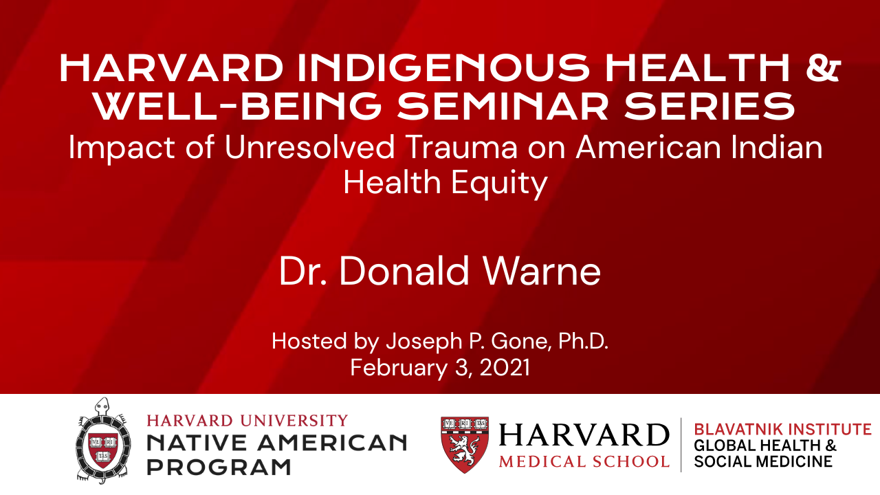 Impact of Unresolved Trauma on American Indian Health Equity Dr. Donald Warne. Recorded on February 3, 2021.